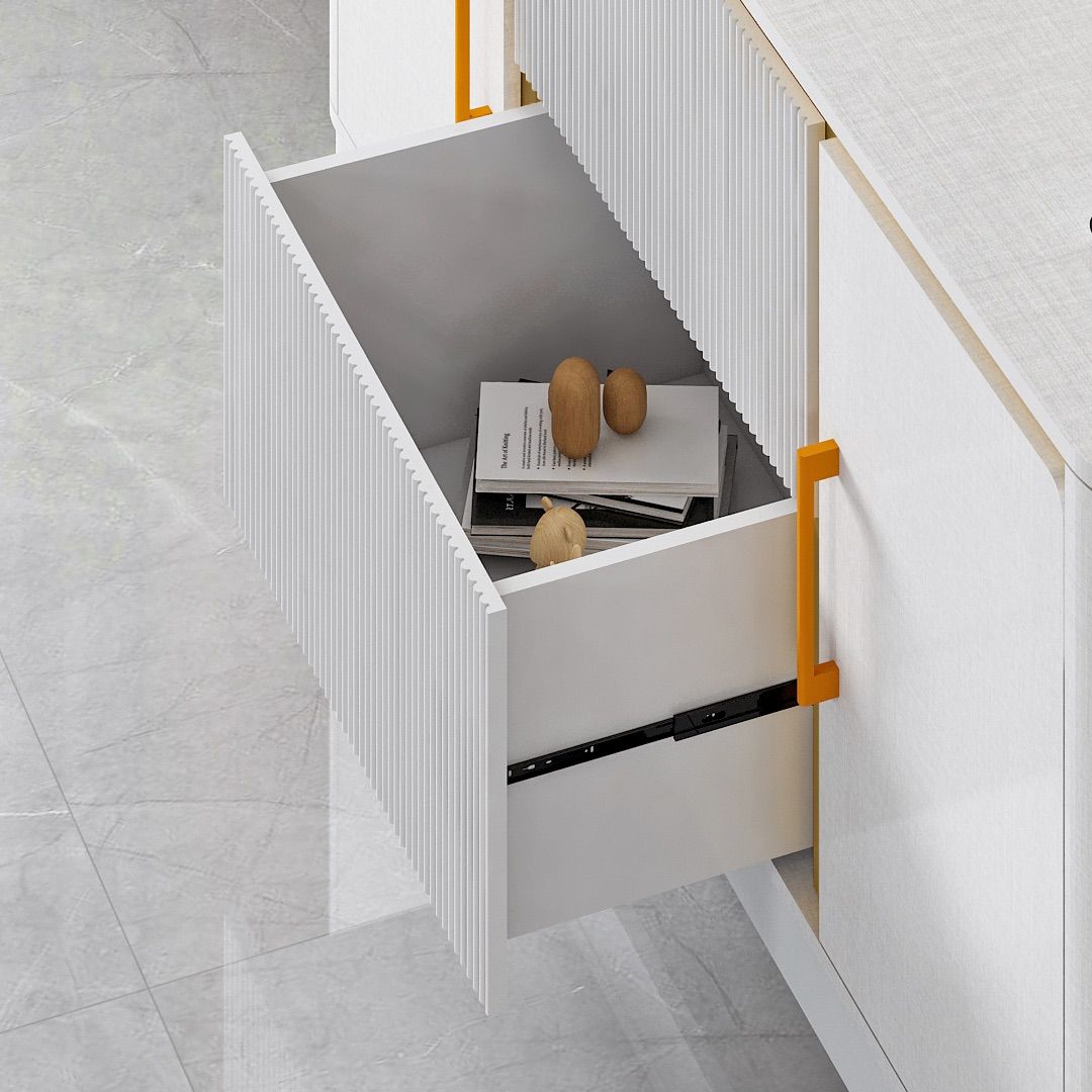 Sebagai aksen tambahan, strip warna emas diaplikasikan secara proporsional untuk memperkuat kesan rapi dan elegan tanpa terlihat berlebihan. CR 015 dirancang fungsional dengan dua laci dan dua pintu, menyediakan ruang penyimpanan yang praktis dan tertata untuk melengkapi area ruang keluarga atau ruang makan.