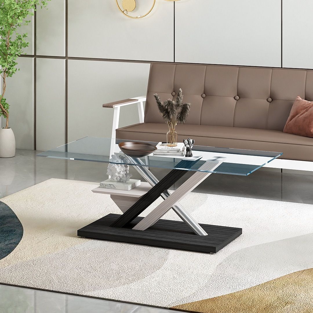 Top meja menggunakan kaca polos yang menghadirkan permukaan bersih dan ringan secara visual. Perpaduan material ini menjadikan Meja Kopi 004 tampil rapi, fungsional, dan cocok untuk berbagai konsep ruang tamu kontemporer.