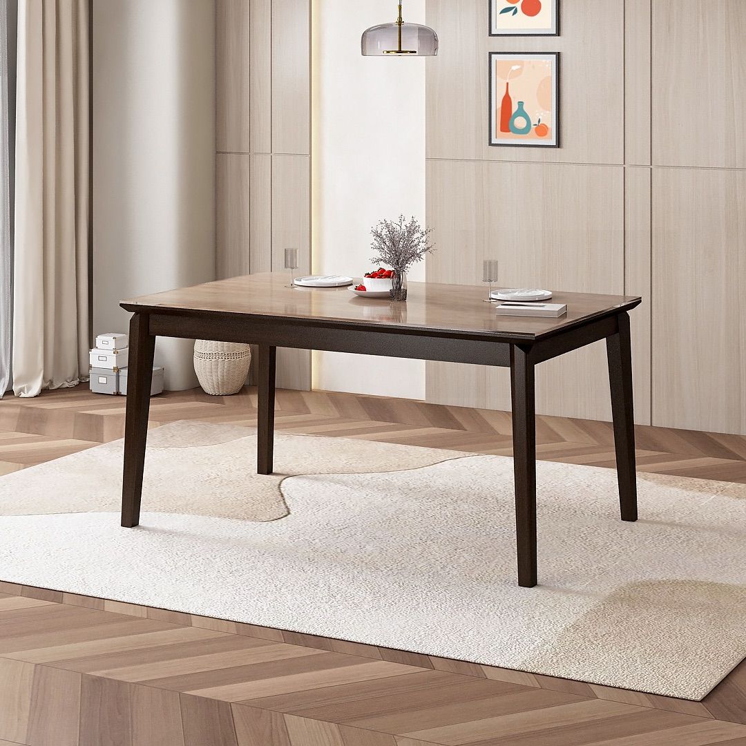 Kombinasi rangka kayu solid dan top kaca berlapis mendukung penggunaan makan sehari-hari secara stabil. Konstruksinya menghadirkan fungsi yang jelas dan tampilan yang tersusun untuk kebutuhan ruang makan rumah.