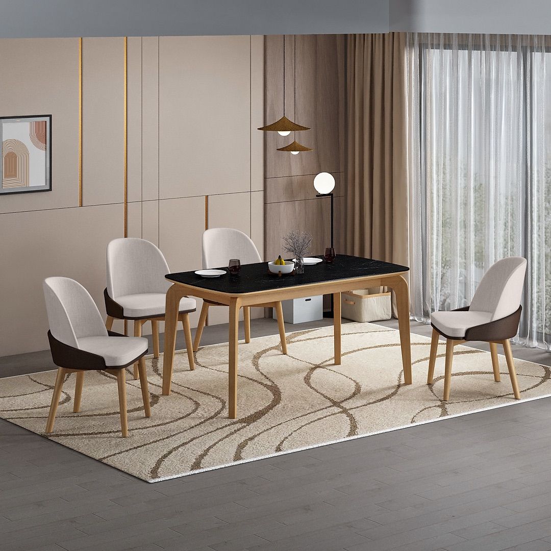 Meja Makan Aoki menggunakan rangka yang terbuat dari kayu mindi solid dengan finishing water-based warna Blonde, menghadirkan struktur yang kokoh dengan tampilan natural dan ringan, cocok untuk penggunaan ruang makan sehari-hari.