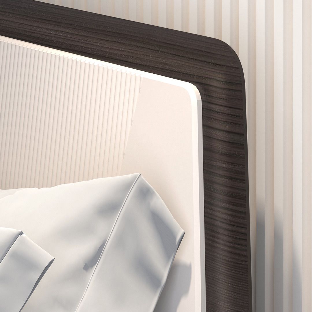 E-001 Bed dirancang menggunakan MDF dengan finishing PVC sheet yang memberikan hasil permukaan lebih halus dan rapi. Proporsi desain dibuat bersih dengan perhatian pada detail, menciptakan tampilan yang tenang dan terkontrol untuk ruang tidur modern.
