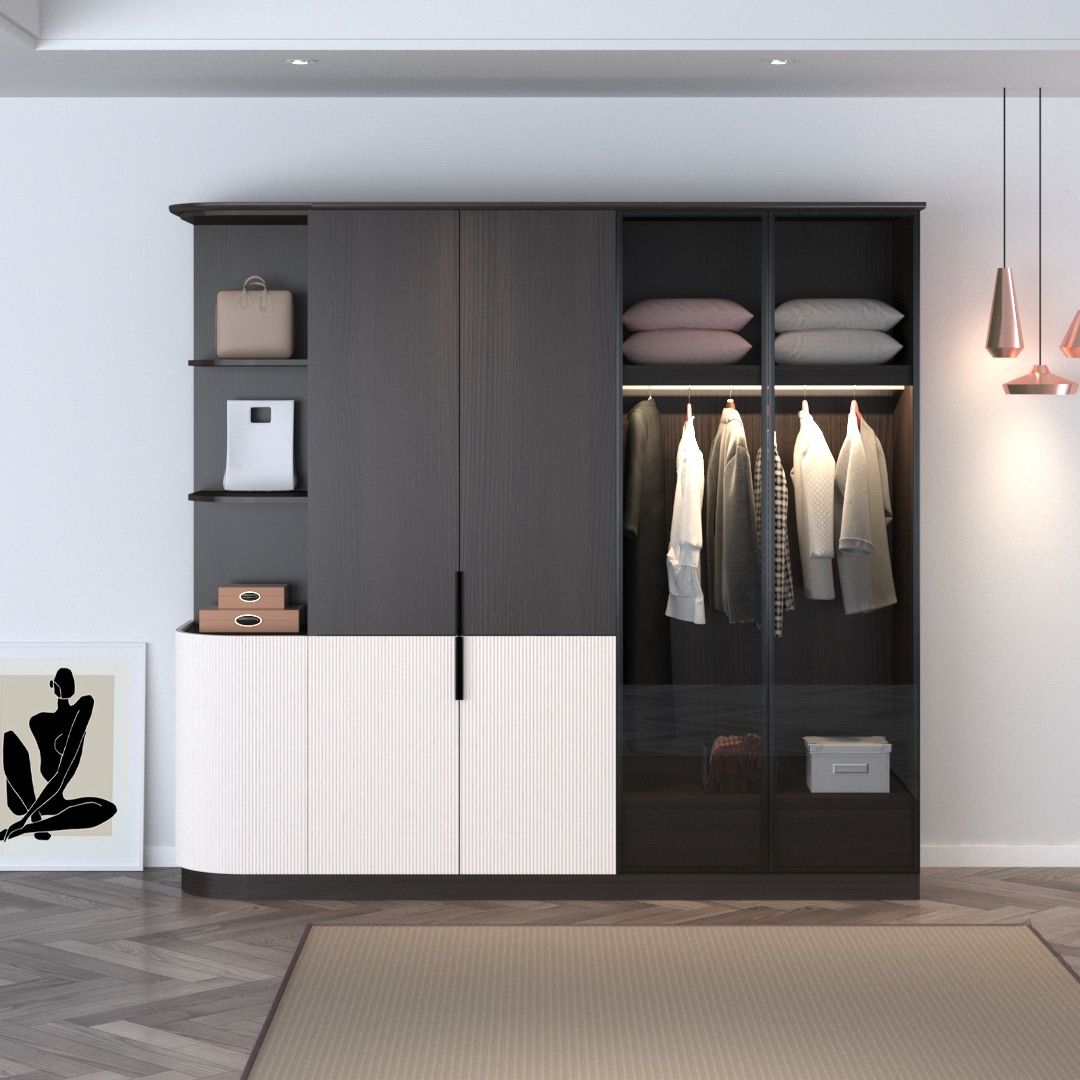 E-004 adalah wardrobe dengan desain rapi dan terstruktur, menggunakan rangka MDF. Finishing badan mengombinasikan PVC sheet, sementara detail fluted pada pintu dilapisi duco warna SLV cream untuk memberi kedalaman visual yang halus.