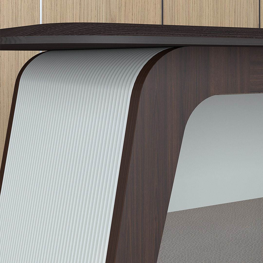 E-006 adalah meja kerja dengan komposisi yang rapi dan proporsi yang lebih tegas, memberi kesan formal. Bagian top dibuat dari MDF dengan finishing PVC sheet, menghadirkan permukaan kerja yang bersih dan terkontrol.