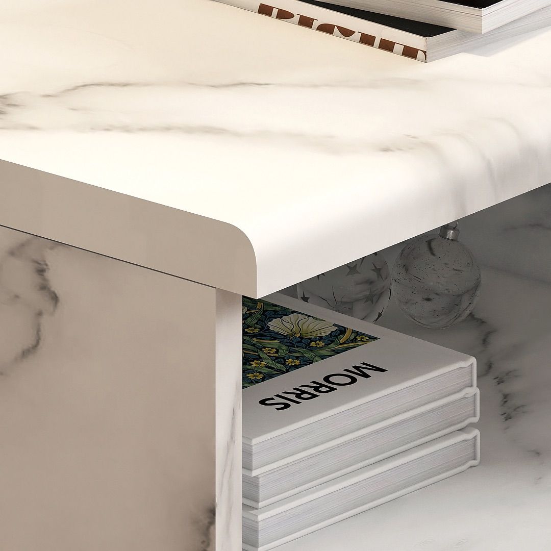 Nakas Marble terbuat dari kombinasi particleboard dan MDF dengan finishing PVC sheet motif marble, menghadirkan tampilan yang modern dan rapi. Konstruksi panel membentuk desain yang bersih dan terdefinisi, cocok digunakan sebagai nakas di samping tempat tidur.