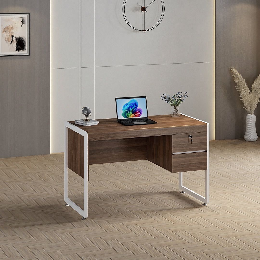 Bagian top meja dan body dibuat dari kombinasi MDF dan particle board, dengan finishing PVC sheet Romanian Walnut yang menghadirkan tampilan kayu yang konsisten dan tertata. Secara keseluruhan, OT 123 menawarkan solusi meja kerja yang praktis dan seimbang untuk kebutuhan kantor.