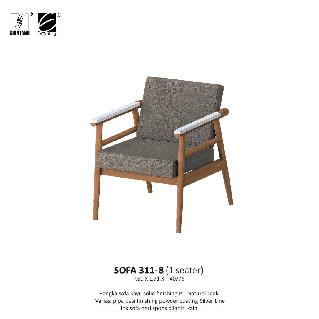 Rangka sofa kayu solid finishing PU Natural Teak, variasi pipa besi coating Silver Line